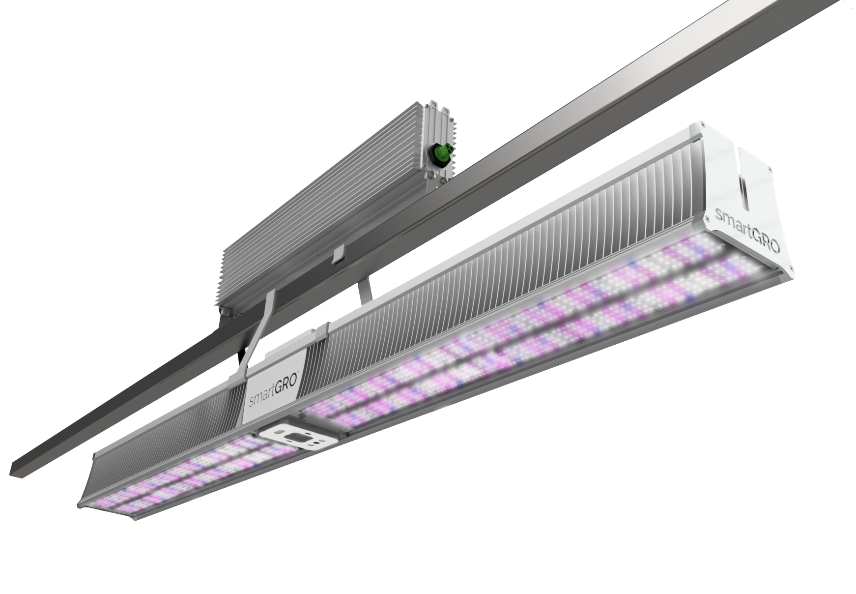 Designed to drive uniform canopy development and optimized morphogenesis, the VF system brings SmartGRO’s full PRISM™ pulsed-spectrum engine and on-board biofeedback intelligence to high-density vertical farms.
